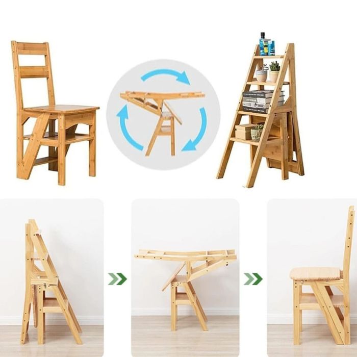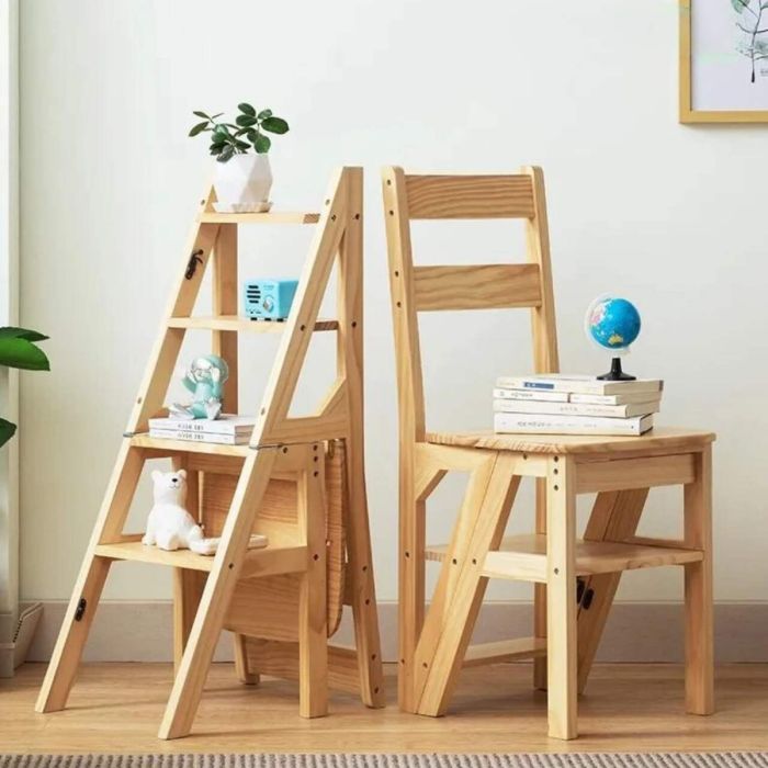 - كرسي سلم قابل للطي مصنوع من الخشب الصلب