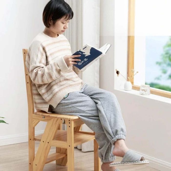 كرسي سلم قابل للطي مصنوع من الخشب الصلب