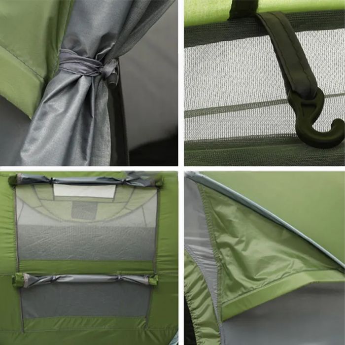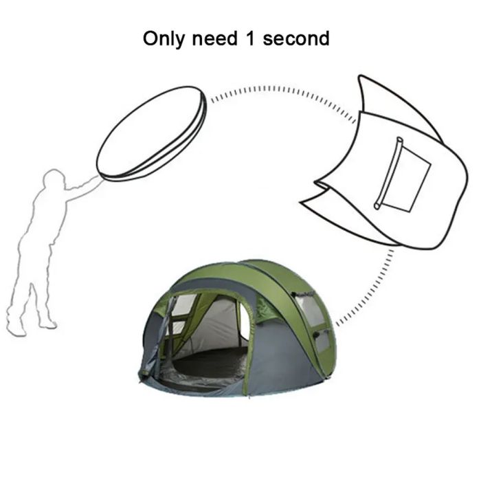 استمتع بتجربة تخييم مريحة مع خيمة مقاومة للماء سريعة الفتح والتركيب، تتسع حتى 3-4 أشخاص، وتتميز بتصميم مميز وقوي. مصممة لتحمل الظروف الجوية المتقلبة، توفر لك حماية وراحة استثنائية في كل مغامرة. تحتوي على 2 أبواب بسحابات مع 4 نوافذ لتوفر إضاءة وتهوية أفضل، وشبكة عالية الكثافة مضادة للحشرات والبعوض ومصنوعة من نايلون وبوليستر متين مقاومة لحرارة الشمس والمطر
