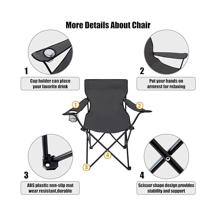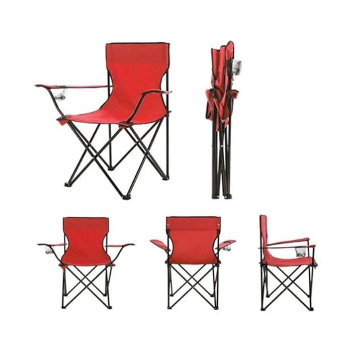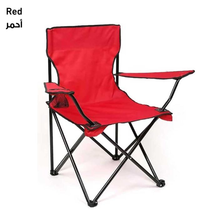 صفقة اليوم هي كرسي تخييم قابلة للطي مع مساند للذراعين وقاعدة أكواب وحقيبة - 80 × 75 × 55 سم