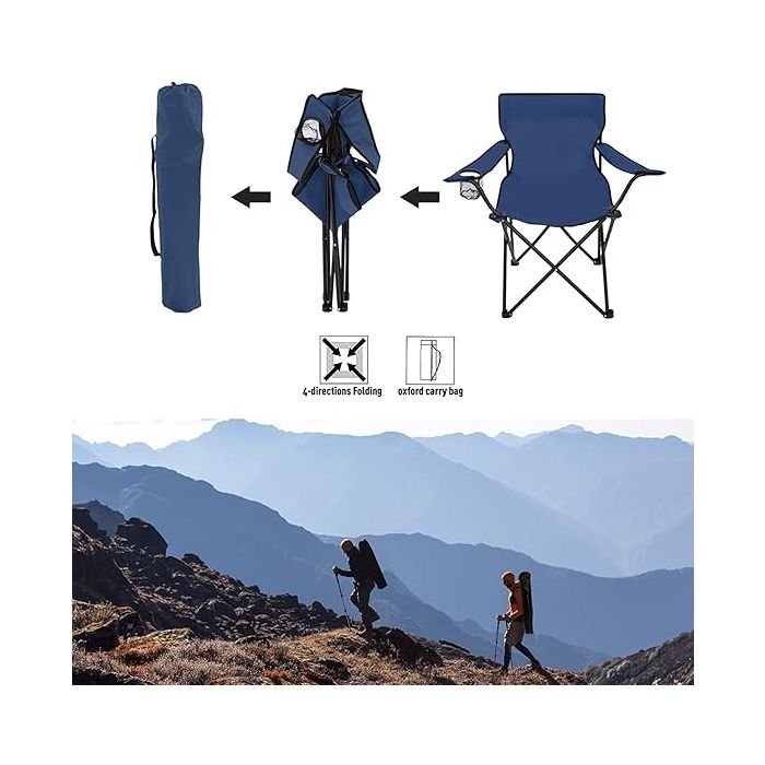 - كرسي تخييم قابلة للطي مع مساند للذراعين وقاعدة أكواب وحقيبة - 80 × 75 × 55 سم