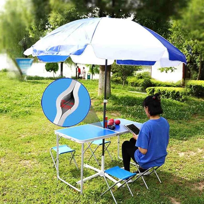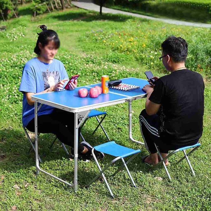 صفقة اليوم هي طاولة قابلة للطي للمخيم مع 4 كراسي 120 × 60 × 70 سم
