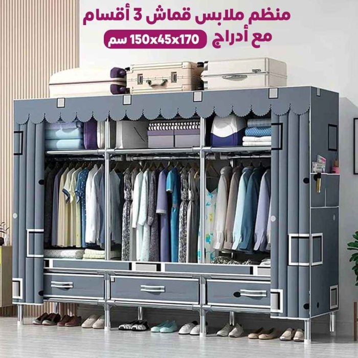 صفقة اليوم هي منظم ملابس قماش 3 أقسام مع أدراج 170 × 45 × 150 سم