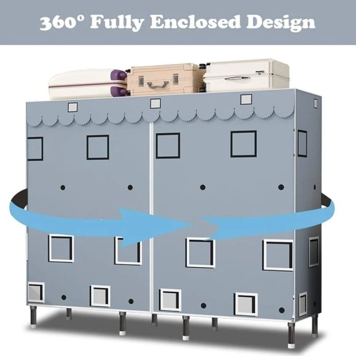 - عزل فعّال من الغبار والرطوبة لحماية الملابس