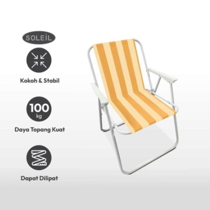 كرسي خارجي مريح وقابل للطي، مصنوع من خامات متينة، سهل الحمل والتخزين، مثالي للرحلات، الشاطئ، التخييم، والحديقة. تم تصميمه ليمنحك أقصى درجات الراحة أثناء الجلوس سواء على الشاطئ أو في الحديقة أو أثناء التخييم والرحلات.