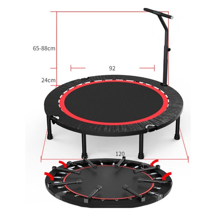 يمنح تجربة قفز آمنة وممتعة مع هيكل فولاذي متين ونوابض قوية لارتداد سريع، كما يتميز بإمكانية الطي السريع لتخزين سهل، مما يجعله خيارًا مثاليًا للتمارين المنزلية واللياقة داخل المنزل أو خارجه.