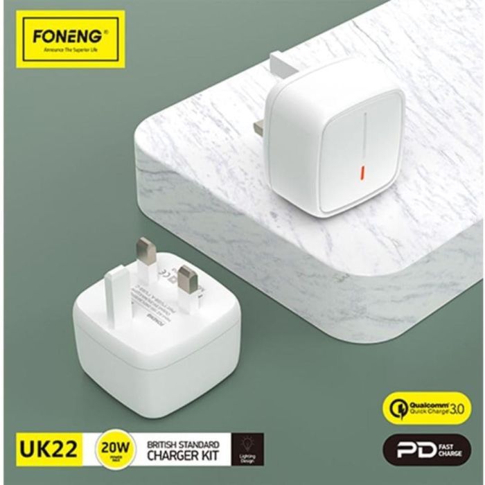 - شاحن سريع 20 واط (QC + PD) مع كيبل Type-Cمن Foneng