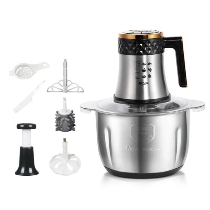 اجعل تحضير الطعام أسهل وأسرع مع محضر الطعام RAF بقوة 300 واط. يأتي مع وعاءين بسعة 3 لتر، واحد من الفولاذ المقاوم للصدأ وآخر من الزجاج، ليمنحك مرونة في تحضير مختلف المكونات. شفراته الحادة 360° توفر تقطيعاً وخلطاً ودمجاً دقيقاً، بينما يضمن التصميم المزدوج للغطاء الأمان ويقلل الانسكابات. بفضل الملحقات المتعددة يصبح مثالياً لتقطيع الخضار وخلط الصلصات ومزج المكونات والمزيد. أجزاؤه قابلة للفك لسهولة التنظيف، وهيكله المتين بلمسة فولاذية أنيقة يجعله رفيقاً موثوقاً في المطبخ.