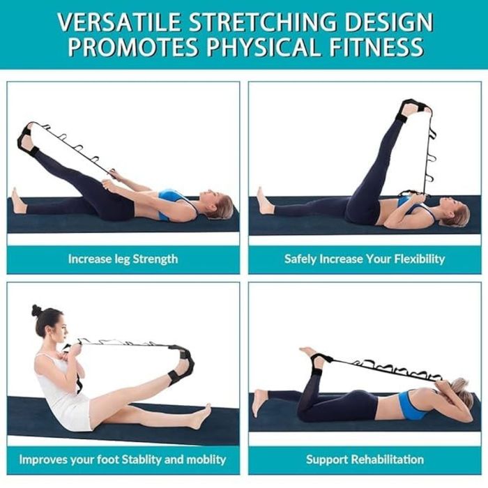 تخلص من تشنجات القدم وحسّن مرونتك مع حزام التمدد الاحترافي. مصمم لشد أربطة القدم والساق بآمان وسهولة، مما يساعد في علاج التهاب اللفافة الأخمصية وتعزيز الحركة. أداة مثالية للعدائين، الراقصين، ولممارسي اليوجا.
