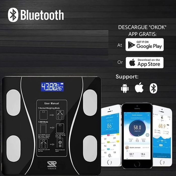 يمكنك استخدام البلوتوث والهواتف الذكية المزودة بمزامنة هاتفك الذكي في تطبيق الهاتف لإدارة الوزن الكامل لمساعدتك في مراقبة صحتك وتحقيق أهدافك بسهولة أكبر. عندما تخطو على الميزان، تقوم الشاشة بعرض الوزن والدهون بالجسم، للحصول على بقية قراءتك، سيكون عليك البحث في التطبيق لمعرفة المزيد عن حالة جسمك