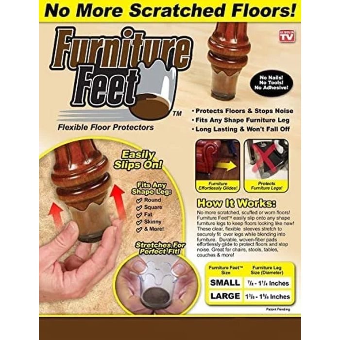 - لا تحتاج أغطية أرجل الكراسي إلى الالتصاق، فهي سهلة التركيب ولا تسقط بسهولة