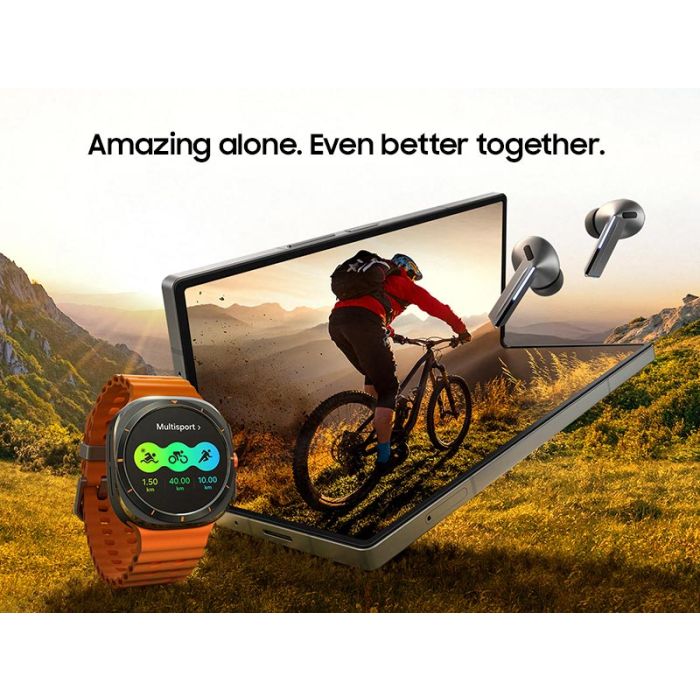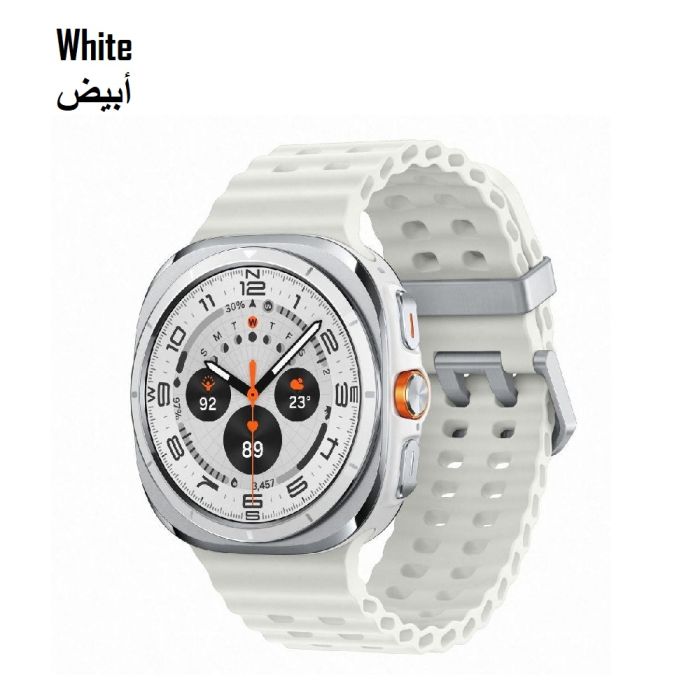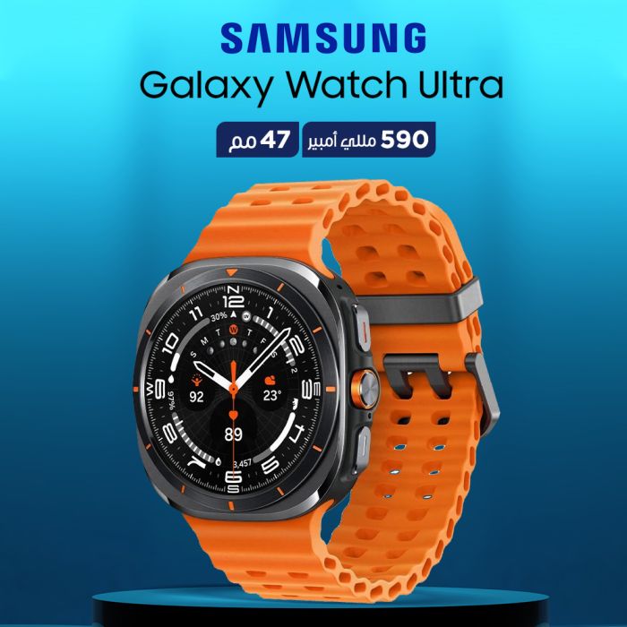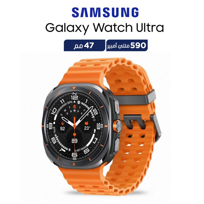 استعد للتميز مع Galaxy Watch Ultra، الساعة الذكية الفاخرة الجديدة المصممة للأداء العالي. تسلق أعلى القمم، واستمتع بركوب الدراجات لمسافات طويلة، واجعل تصميم التيتانيوم المتين يقاوم أقسى التحديات، حتى في السباحة في المحيط. احفظ نمط حياتك الصحي بفضل الميزات الجديدة المدعومة بتقنية Galaxy AI، والتي تمنحك ميزة تنافسية، بما في ذلك تقييم الطاقة الذي يساعدك على بدء كل يوم بمعرفة كاملة، وتحسين تتبع معدل ضربات القلب الذي يساعدك في مراقبة صحتك القلبية خلال أنشطتك الرياضية المفضلة. تحدى نفسك لتجاوز أدائك السابق في الجري أو ركوب الدراجات مع جهاز تتبع يقارن أدائك الحالي بأدائك السابق. أينما قررت الذهاب، استكشف طرقًا جديدة بفضل نظام GPS المحسن الذي يسهل التنقل، وبطارية تدوم حتى 100 ساعة، الأطول عمراً حتى الآن. بالإضافة إلى ذلك، يمكنك البقاء مركزاً على تمرينك مع القدرة على تلقي المكالمات والرسائل النصية مباشرة من معصمك.