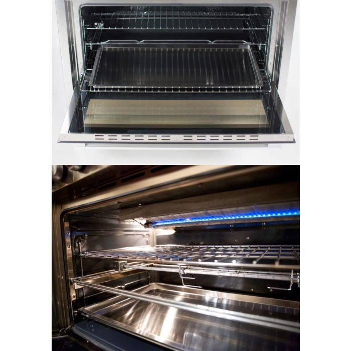 - تصميم أنيق: باب فرن زجاج ثلاثي، إضاءة داخلية، شواية مزدوجة، سعة فرن كبيرة (140 لتر)