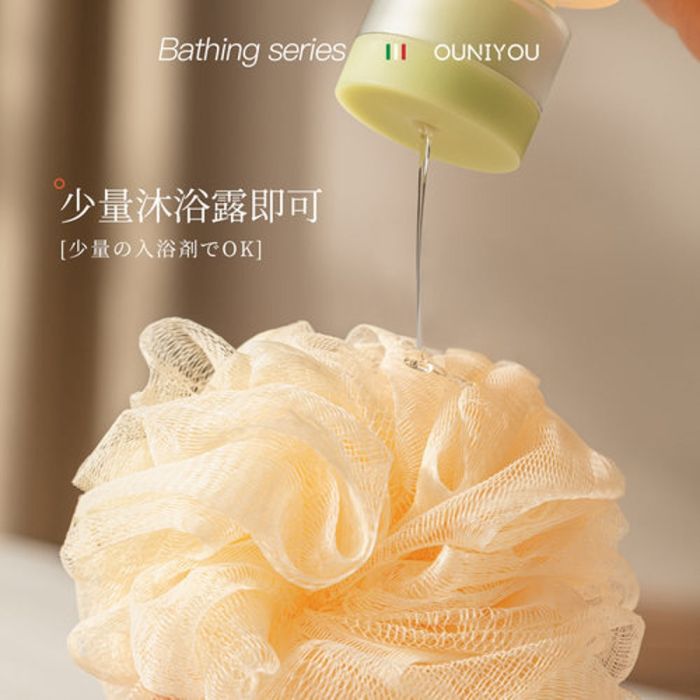 ليفة استحمام رغوية ناعمة مصنوع من ألياف مرنة كثيفة، تصميم لا يتفكك بسهولة ويوفر رغوة غنية، لطيفة على البشرة ومناسبة للاستخدام اليومي، تمنحك إحساس سبا منزلي منعش