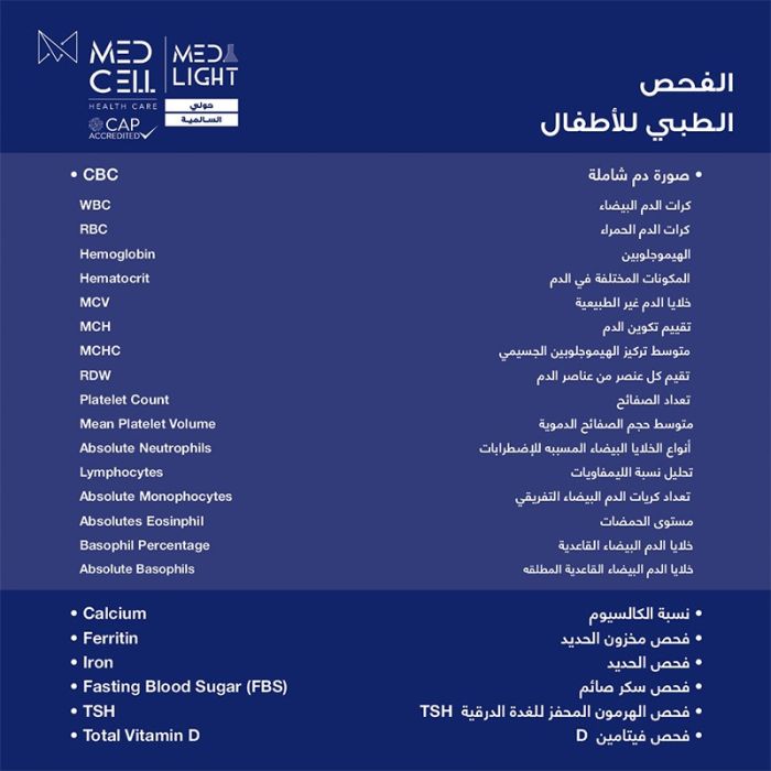 اطلب كود شيييل و احصل على خدمات مميزة للفحص الطبي للأطفال من مختبر Med Light