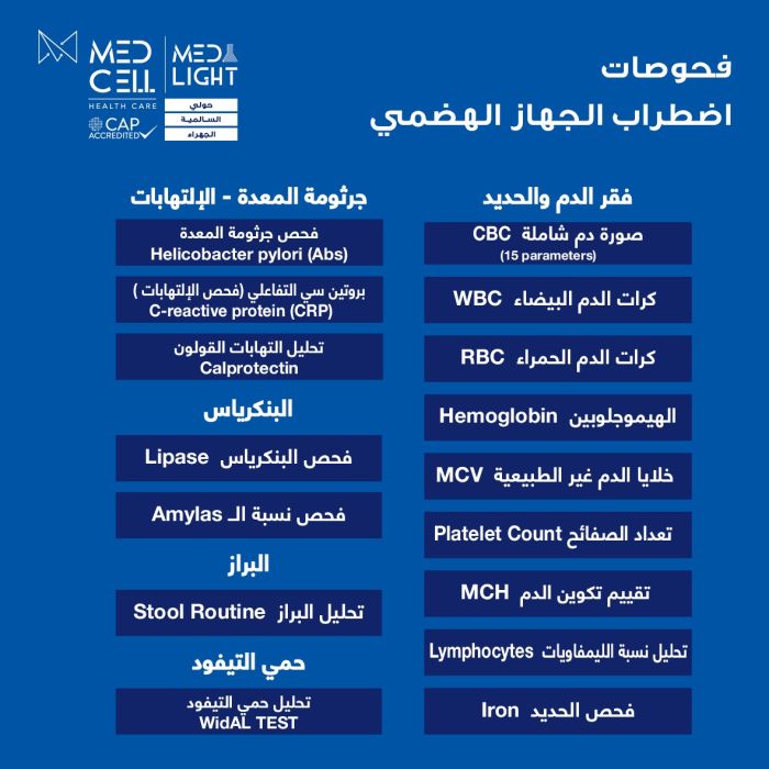 اطلب كود شيييل و احصل على خدمات مميزة لفحوصات اضطراب الجهاز الهضمي من مختبر Med Light - لمعرفة قيمة الخدمة يرجى الاتصال على المختير