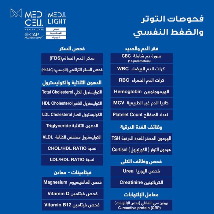 اطلب كود شيييل و احصل على خدمات مميزة لفحوصات الضغط والنفسي من مختبر Med Light - لمعرفة قيمة الخدمة يرجى الاتصال على المختير