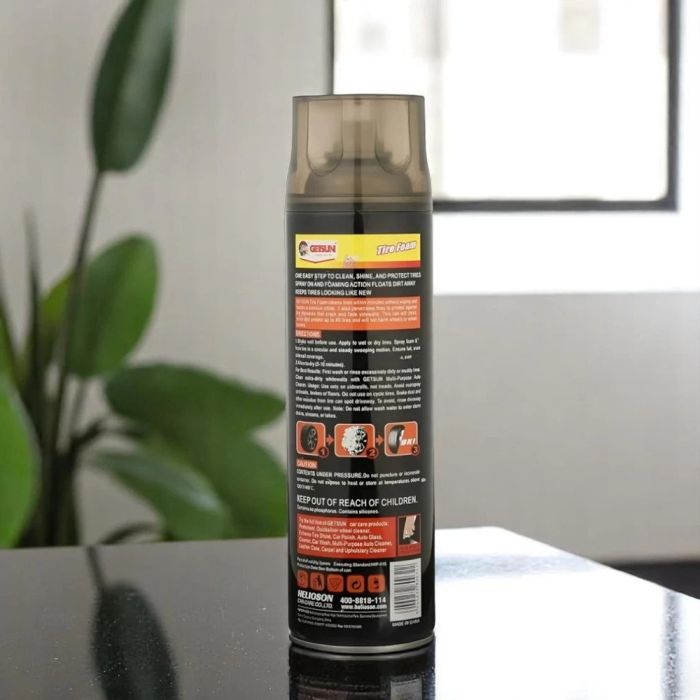 جدد مظهر إطارات سيارتك واجعلها تبدو كأنها جديدة مع بخاخ GETSUN المخصص للإطارات. تعمل تركيبته الفعالة على تنظيف الإطارات من الأوساخ والغبار وإعطائها لمعانًا جذابًا يدوم طويلًا. يتميز بسهولة استخدامه، حيث يمكنك رشه مباشرة على الإطار دون الحاجة إلى فرك أو شطف. هذا المنتج هو الحل السريع والسهل للحفاظ على نظافة وجمال إطارات سيارتك.