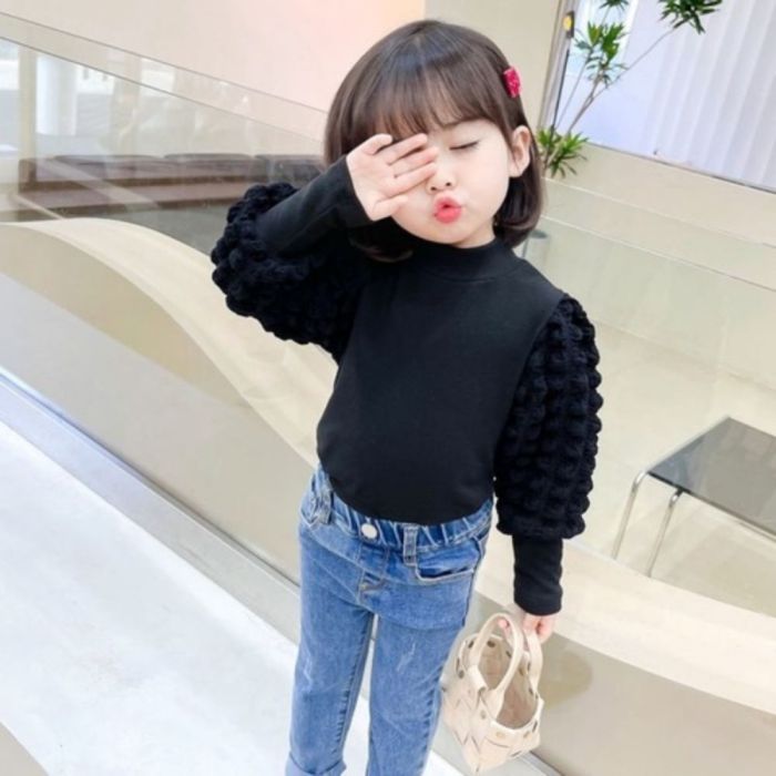 - تيشيرت بأكمام منفوشة ورقبة دائرية للبنات