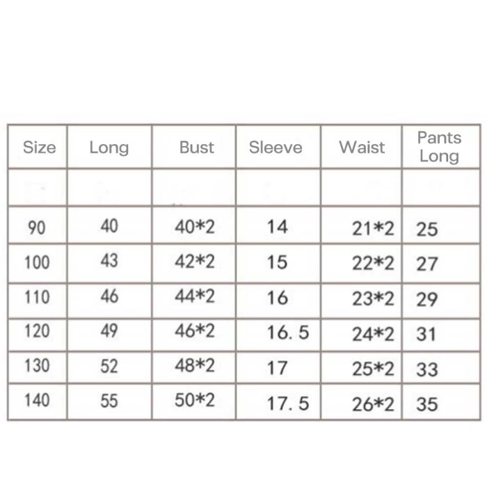 - المقاسات: من 8 إلى 9 سنوات – 140 سم