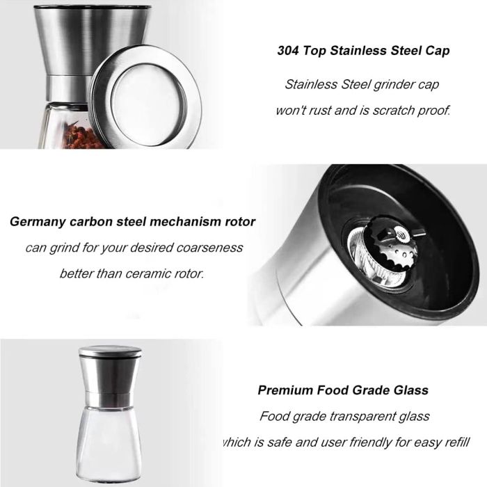 - مصنوعة من زجاج سميك ونقي لا يمتص الروائح ويحافظ على جودة التوابل لفترة طويلة