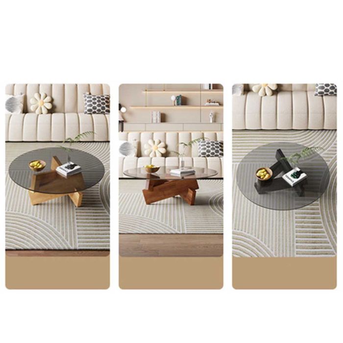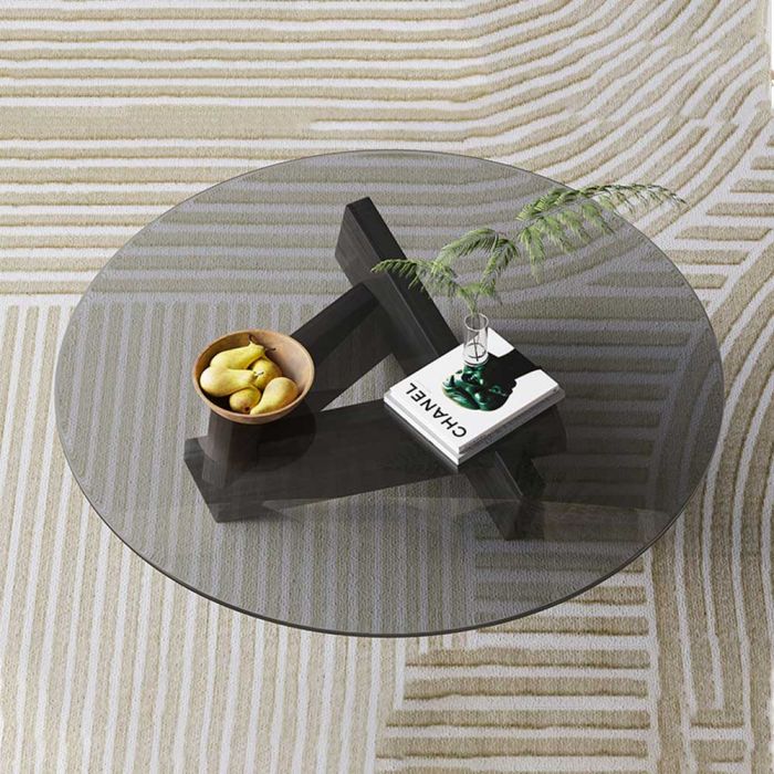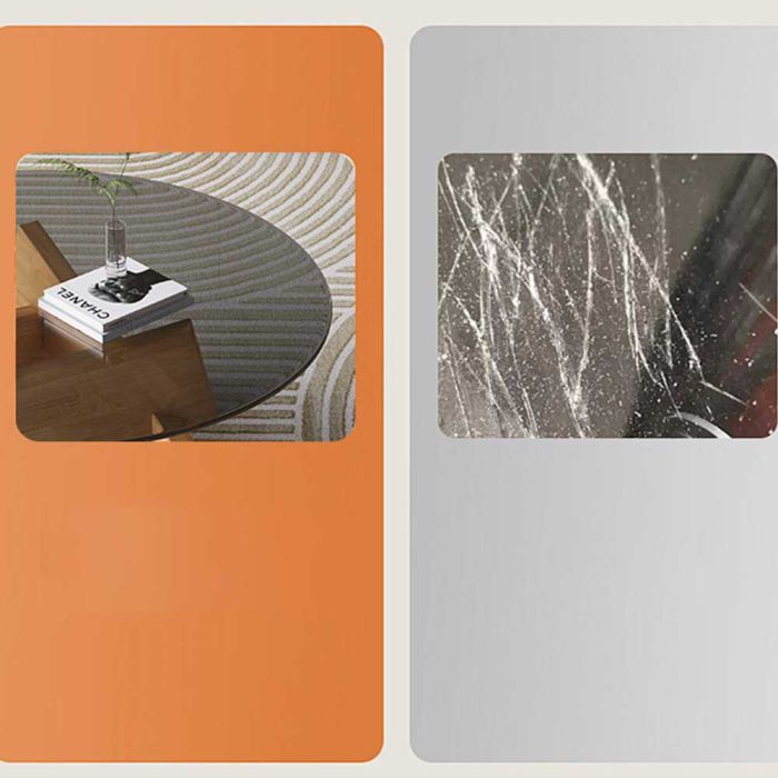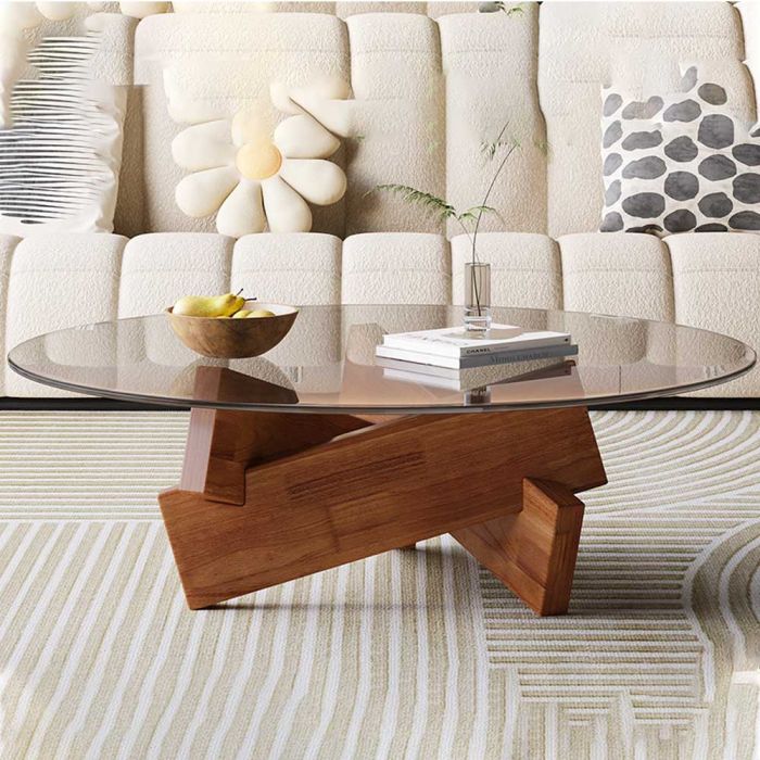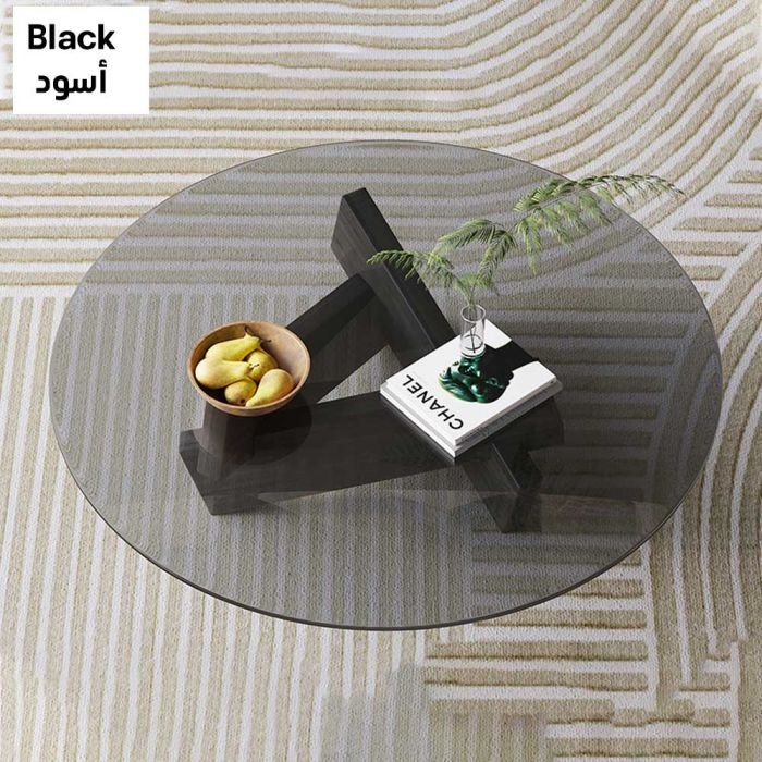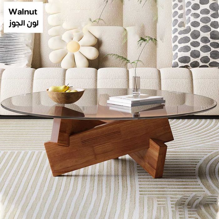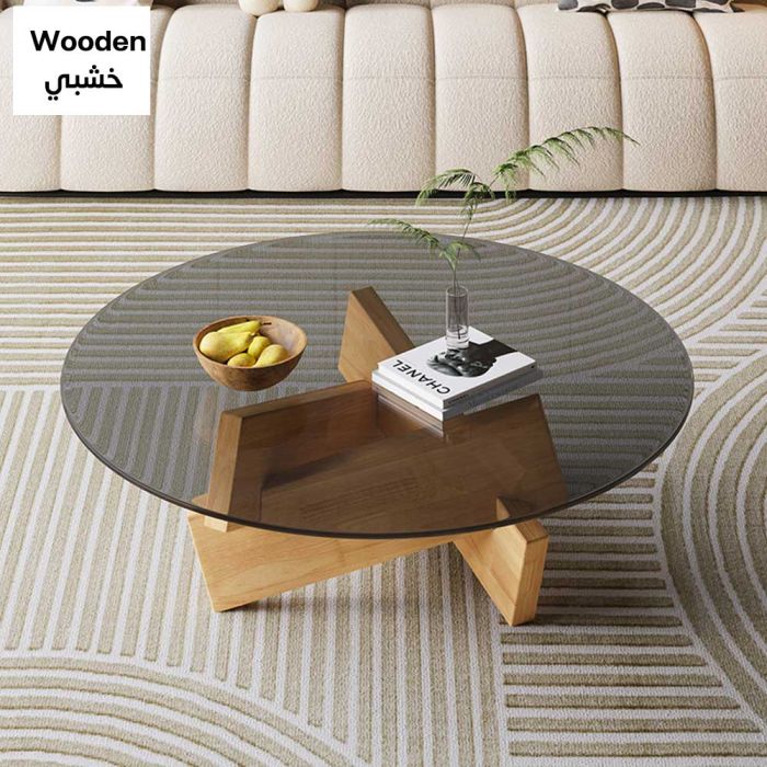 طاولة زجاجية دائرية مصنوعة من سطح زجاج مقسى، وقاعدة من خشب صلب، تمنحك ثباتًا أنيقًا في وسط الغرفة، سطح يبرز ترتيب ضيافتك ويُمسح بسهولة، مناسبة للقهوة والكتب ولمسات الديكور.