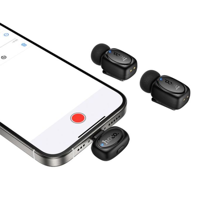 - ميكروفون لافالير لاسلكي مزدوج مع شحن USB‑C من Hoco