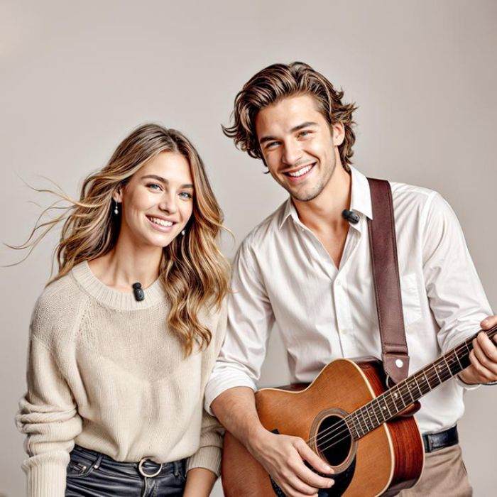 - ميكروفونات لافالير مزدوجة من جميع الاتجاهات مع ميزة إلغاء الضوضاء