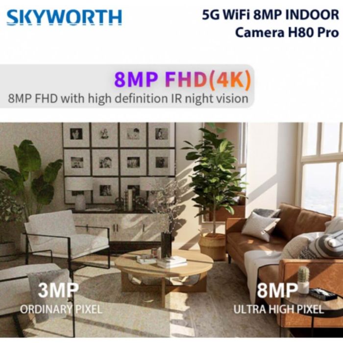 - كاميرا مراقبة داخلية واي فاي 8 ميجابكسل H80 Pro بتقنية 5G من Skyworth