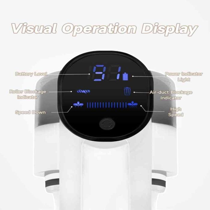 - شاشة LED ذكية مع تنبيهات الأعطال تعرض مستوى البطارية وسرعة التشغيل وحالة تدفق الهواء مع تنبيهات فورية للانسداد
