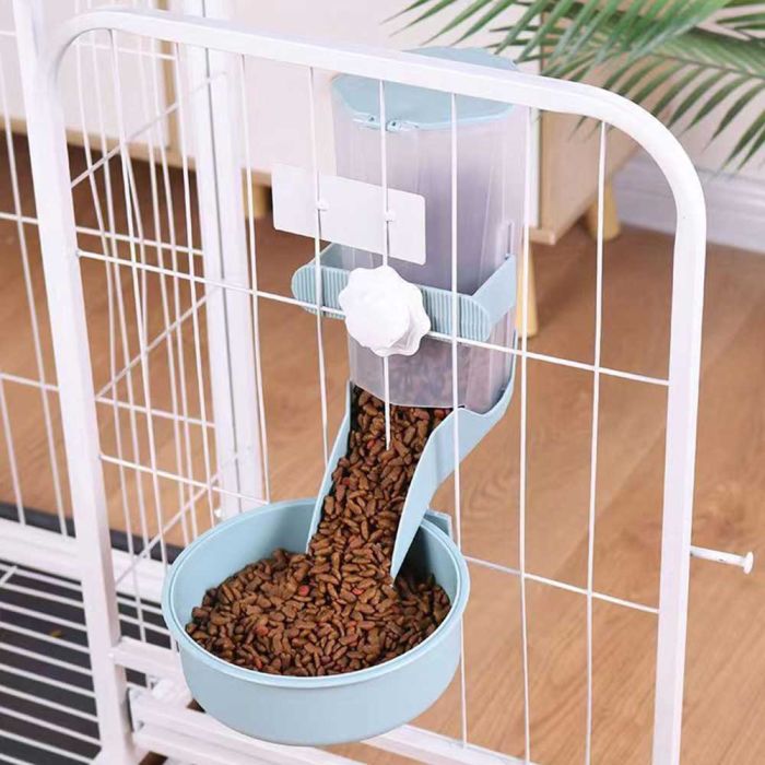 - وعاء طعام معلق للحيوانات الأليفة مع حاوية
