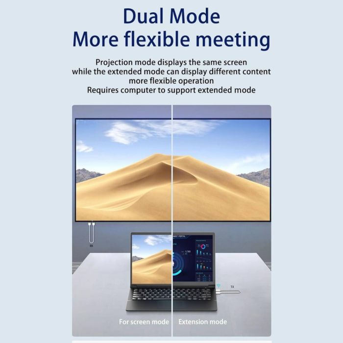 - وضعان للتشغيل: عكس الشاشة أو توسيعها.