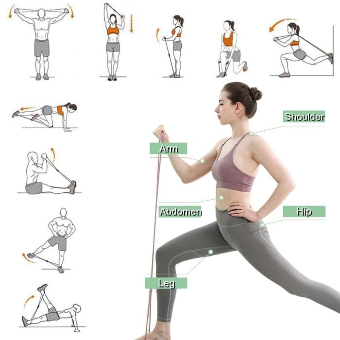- حبل مقاومة مطاطي عالي المرونة لتمارين الجسم.