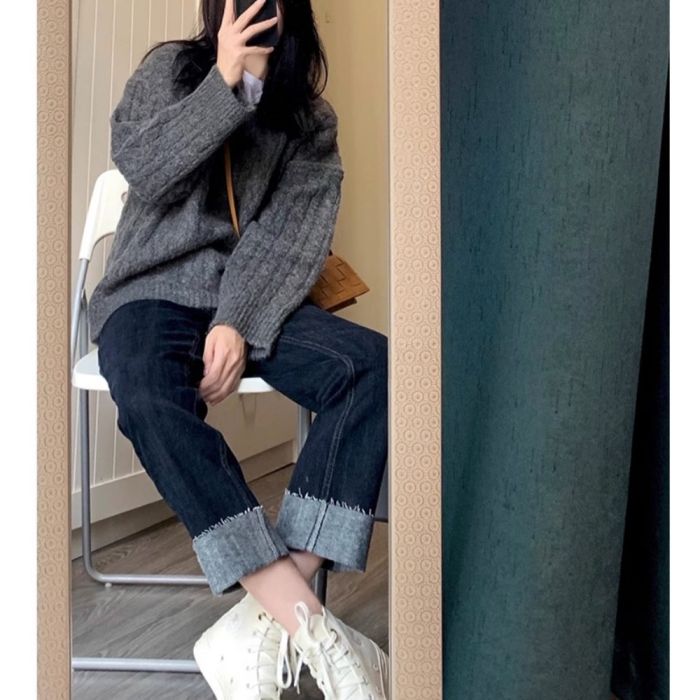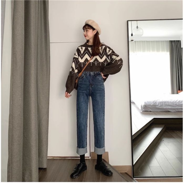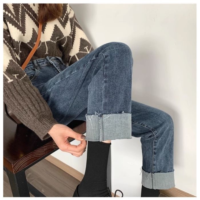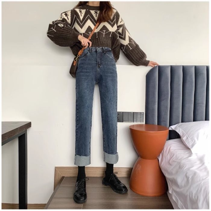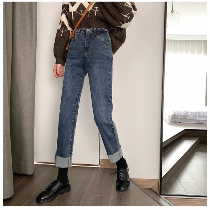 - بنطلون جينز بقصة ضيقة وخصر عالٍ للسيدات