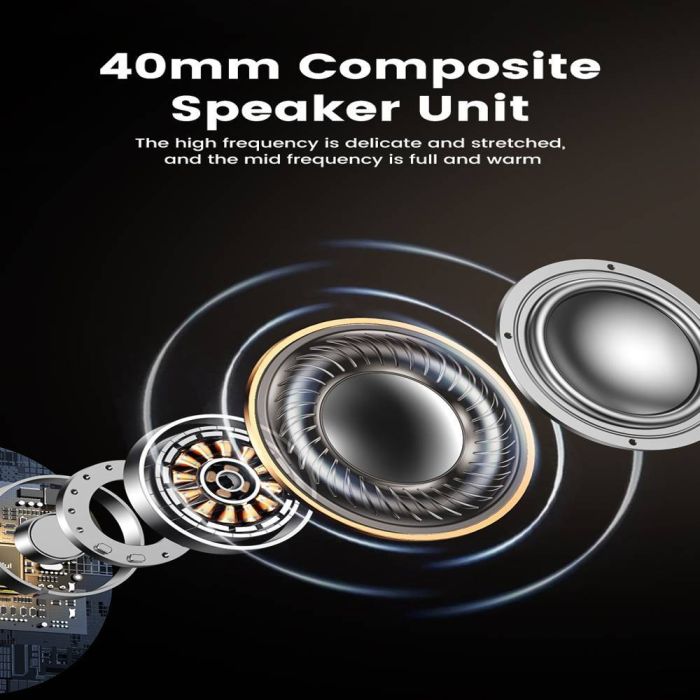 - مشغل صوتي 40 ملم مع دعم ترميز LDAC لجودة صوت عالية ومتوازنة