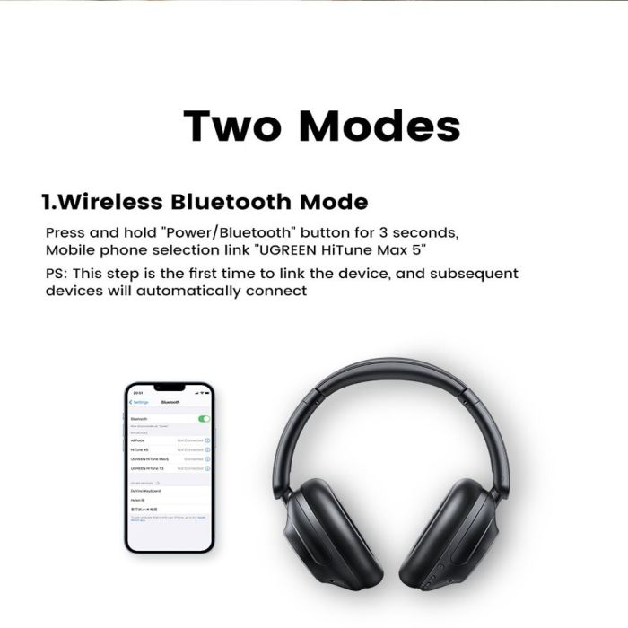 - سماعة رأس لاسلكية HiTune Max5 بخاصية إلغاء الضوضاء من UGREEN