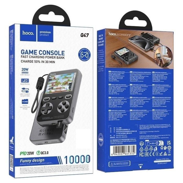 - بطارية احتياطية 10000 مل أمبير شحن PD سريع 20 واط مع جهاز ألعاب مدمج 2 في 1 من Hoco
