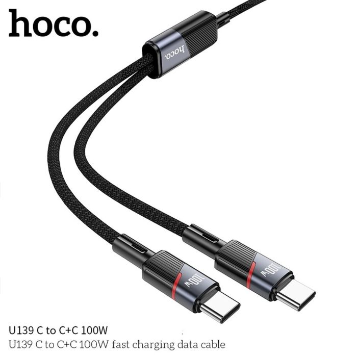 - كيبل نقل بيانات 2 في 1 من Type-C إلى Type-C بقوة 100 واط من Hoco