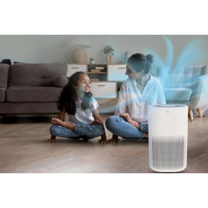 منقي هواء عملي مع فلتر HEPA وفلتر كربون، يتحكم بالهواء بسرعة 3 سرعات ويغطي مساحة 13-23 متر مربع.