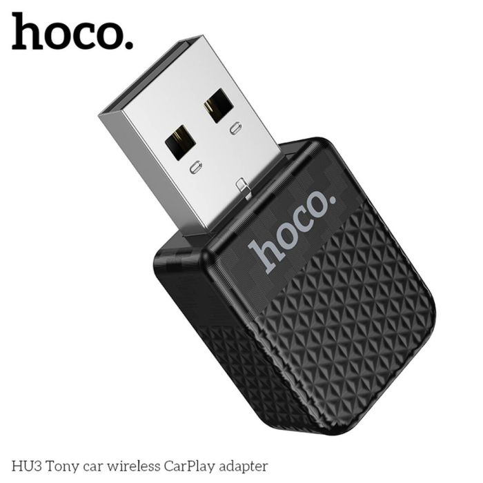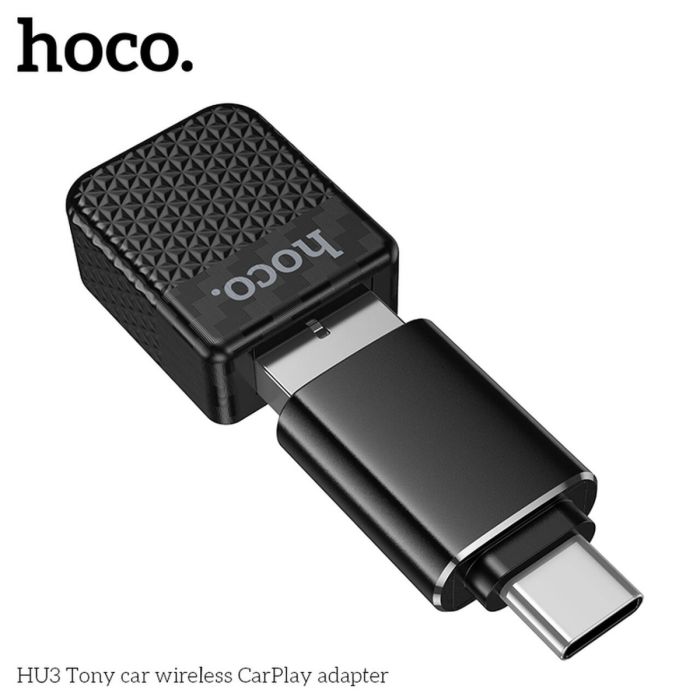 محول Tony لاسلكي للسيارة CarPlay مع محول USB إلى Type-C من Hoco