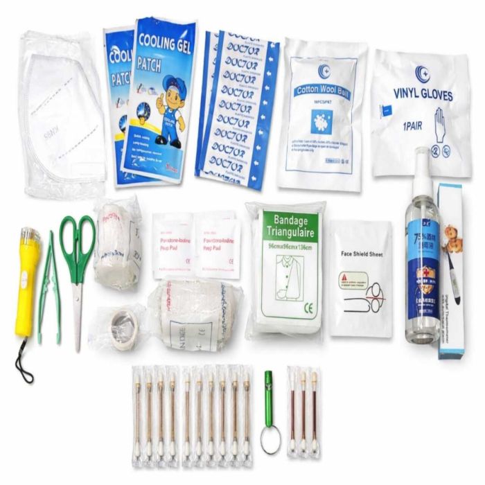 - تحتوي على مستلزمات أساسية للعناية بالجروح مثل 10 لاصقات، و10 كرات قطن، و10 أعواد قطن للتنظيف والعناية بالإصابات البسيطة.