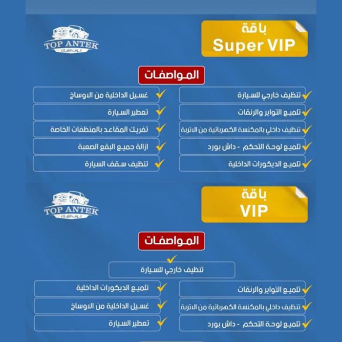 إحصل على خدمة VIP أو سوبرVIP لغسيل سيارتك من أمام منزلك من Top Antek