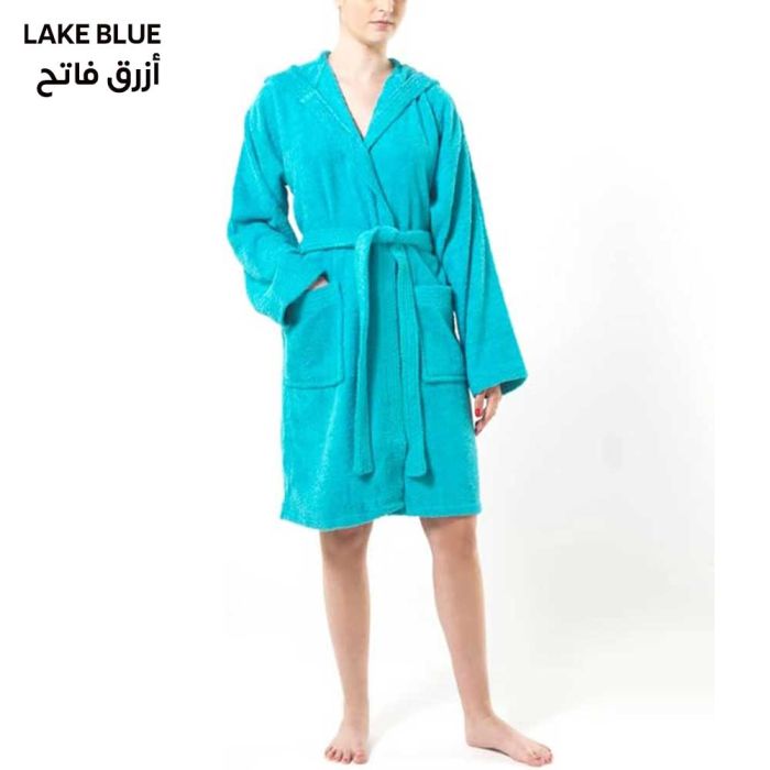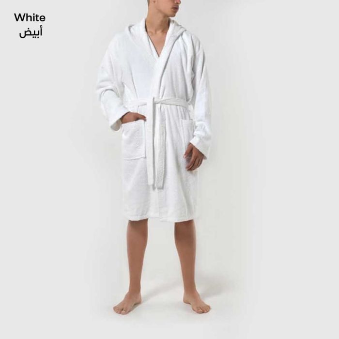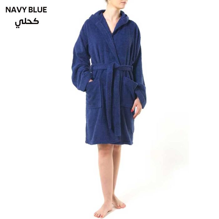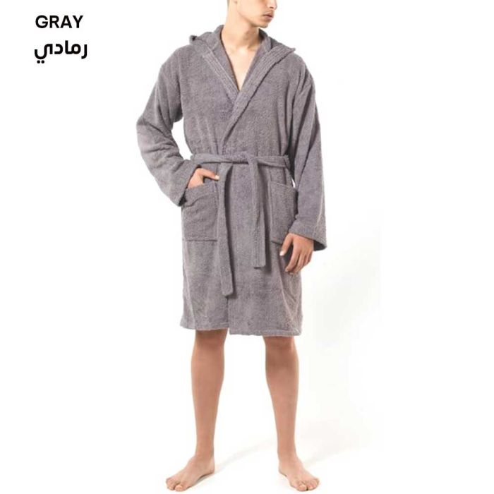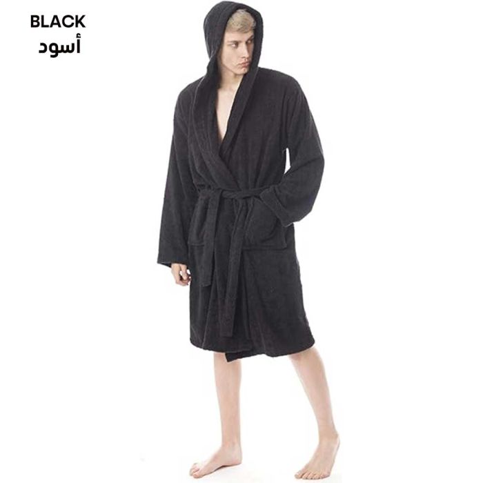 رداء حمام مريح بغطاء للرأس مصنوع من قماش تيري الناعم مصنوع من القطن بنسبة 100% مما يجعله صديقًا للبشرة وناعمًا وذو قدرة عالية على الامتصاص. مريحة في الارتداء، مع جيوب كبيرة وغطاء للرأس. يضمن التجفيف الفعال ويعطي شعوراً بالنعومة عند ملامسته للجلد.