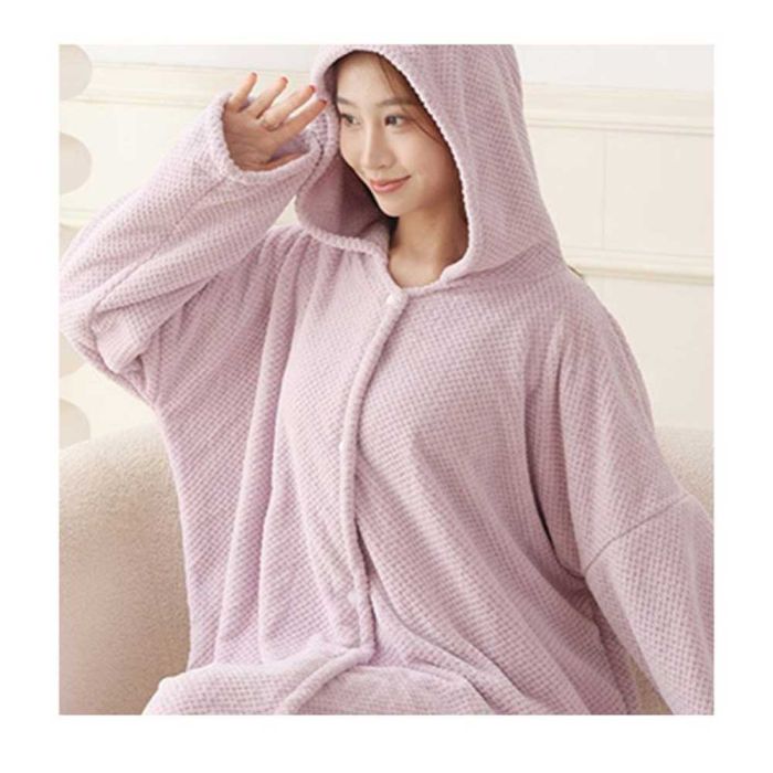 - روب حمام ميكروفايبر بغطاء رأس طويل الأكمام 75×100سم