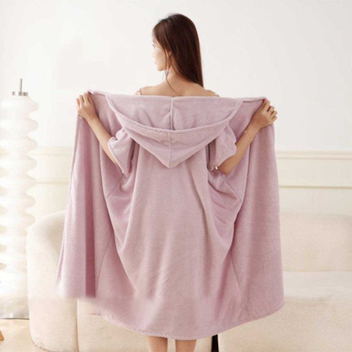 صفقة اليوم هي روب حمام ميكروفايبر بغطاء رأس قصير الأكمام