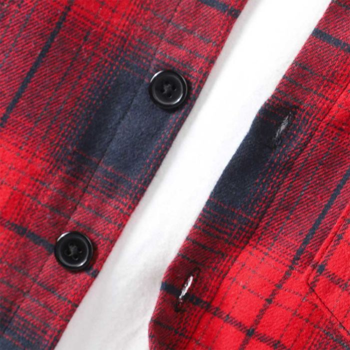 طقم كاروهات بغطاء رأس ولادي مصنوع من خامة مريحة، تصميم كاروهات عصري، طقم متناسق يمنح راحة ودفء، مناسب لإطلالة شتوية جذابة