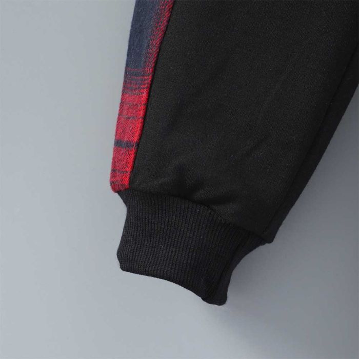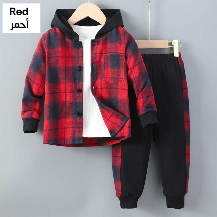 طقم ولادي بنطلون وسويشترت كاروهات بغطاء رأس