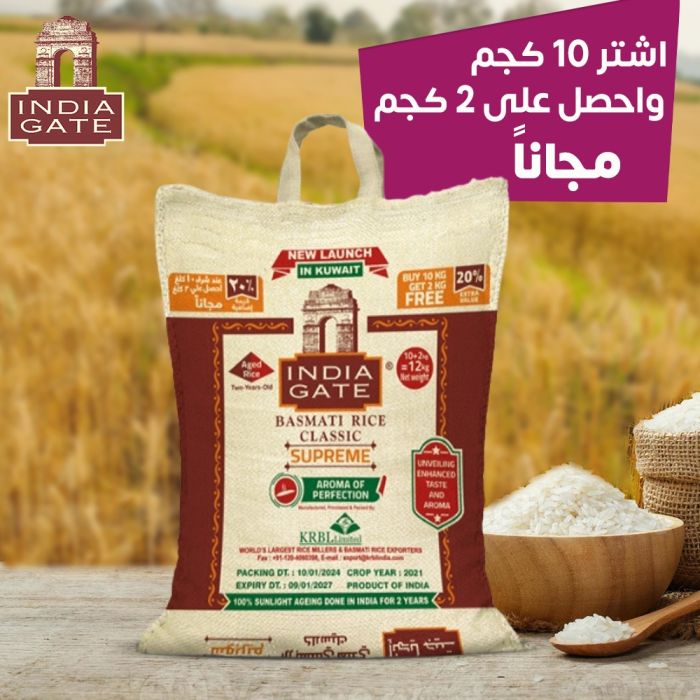 - أرز بسمتي كلاسيك سوبريم 10 كجم + 2 كجم مجاناً من India Gate
