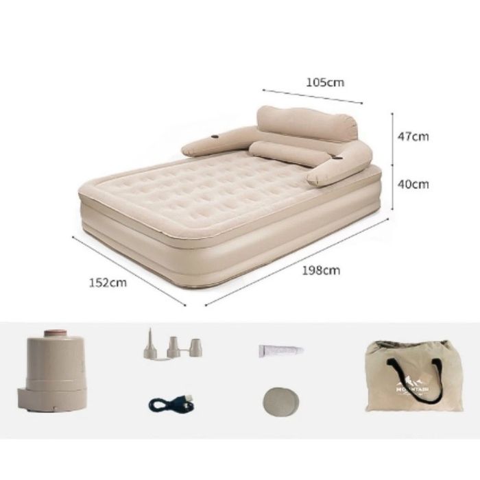 - مضخة هواء كهربائية مدمجة تعمل بضغطة زر وتُشحن عبر كيبل USB لسهولة النفخ والتفريغ