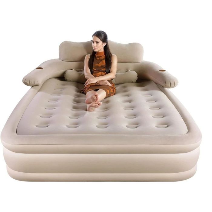 - سرير قابل للنفخ مع مضخة مدمجة ومسند يد وظهر